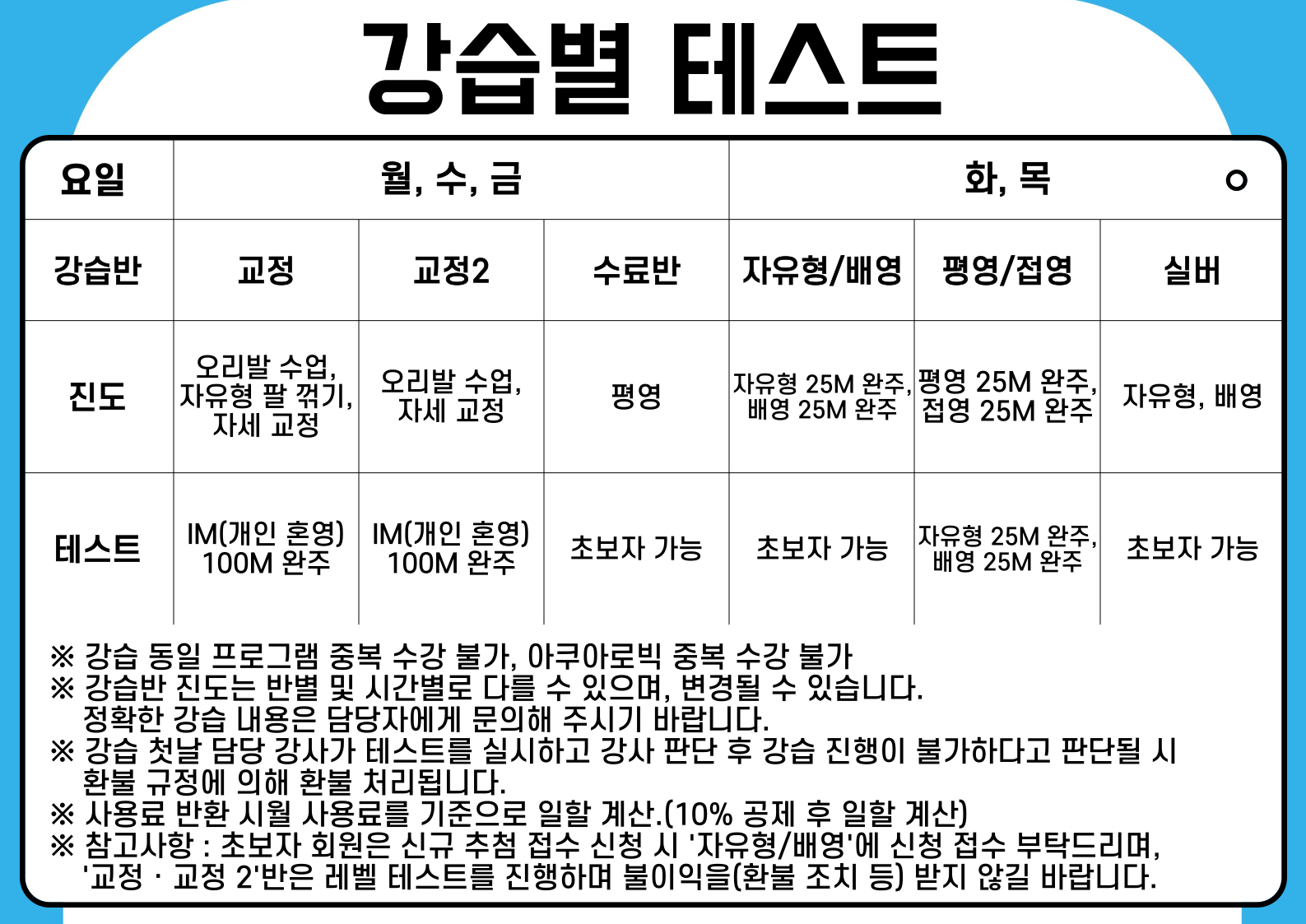 ★ 강습 프로그램 구성 안내 및 강습별 테스트 ★2025-06-12 | |||