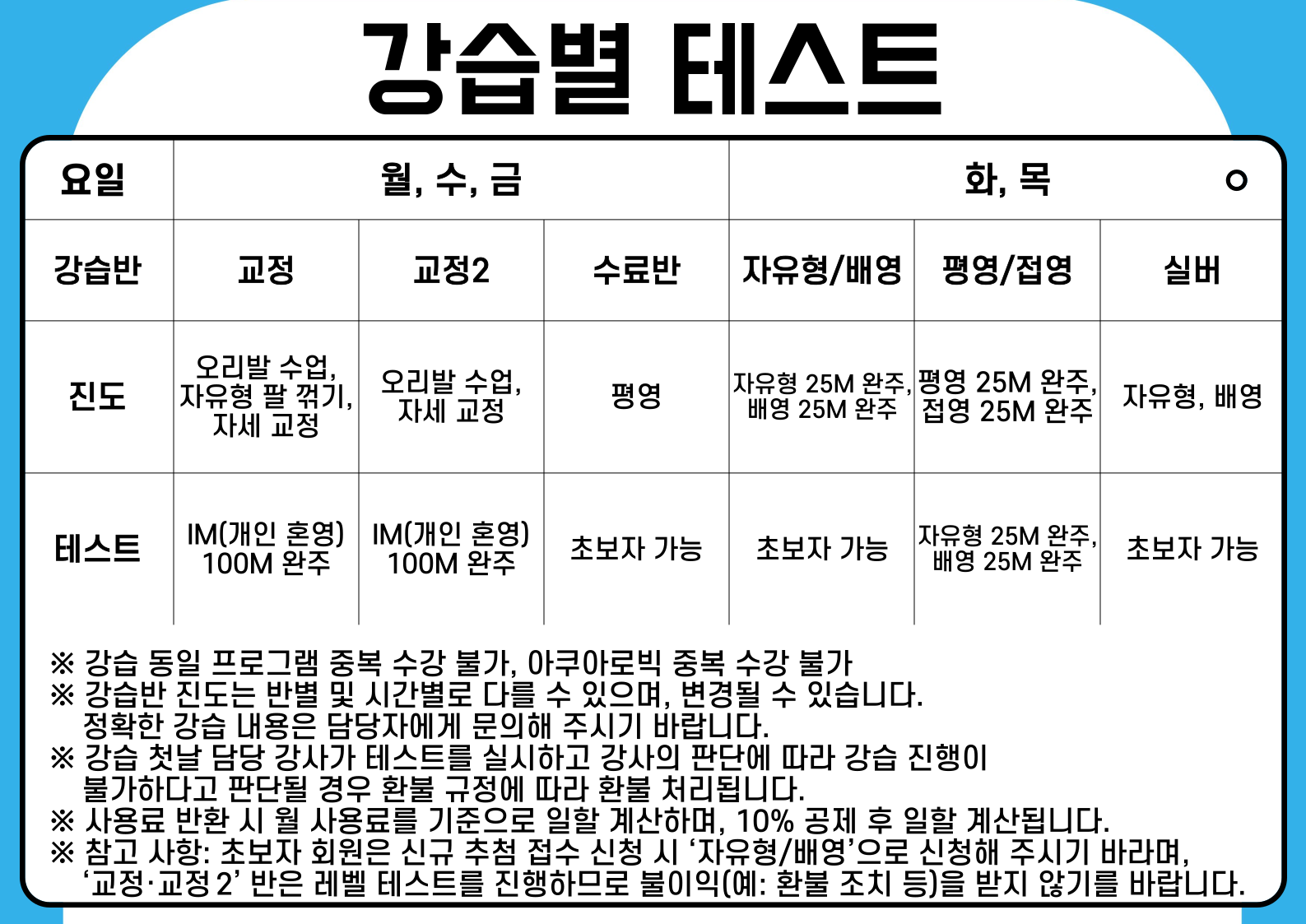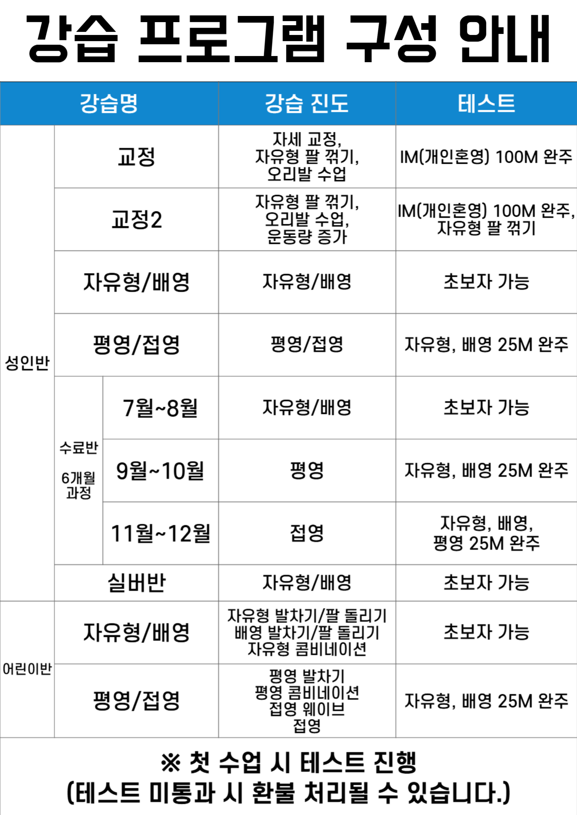 ★ 강습 프로그램 구성 안내 및 강습별 테스트 ★
