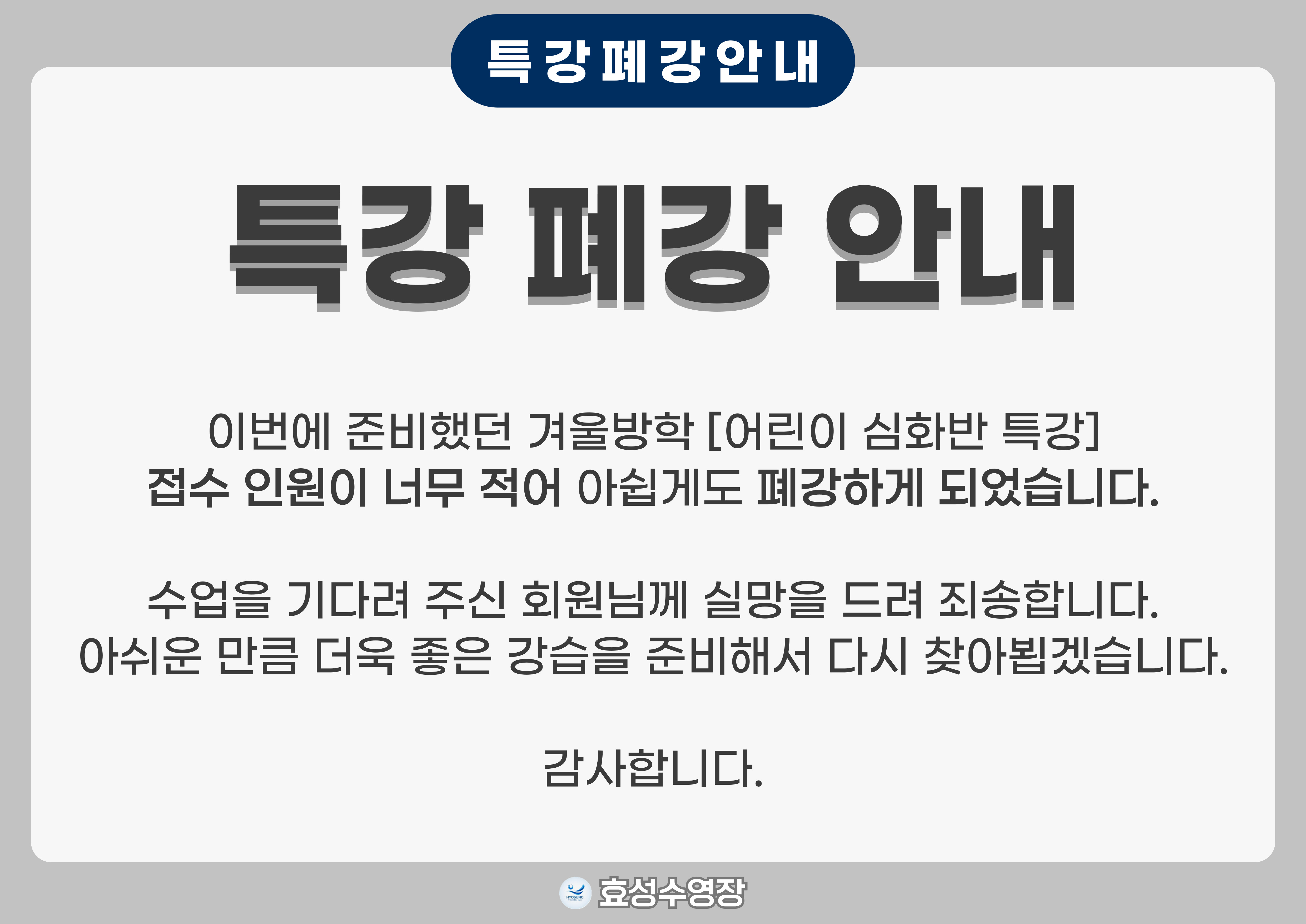 | 어린이 겨울방학 특강 폐강 안내2026-01-12 | |||